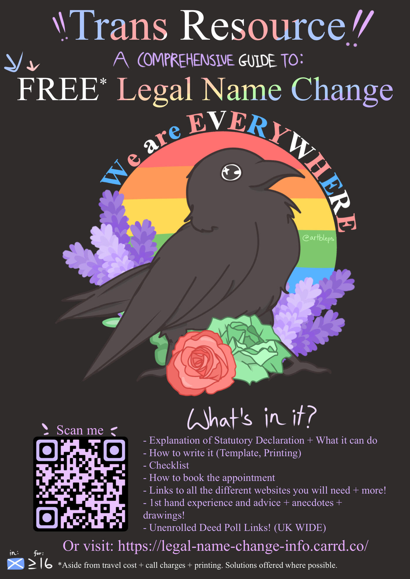 Notable edits: YSC info, Places for Printing + Tackling Travel Cost, Updated FLYER, Deed Poll info, Embedded Flyer Preview, added screen-reader friendly Word doc. business card designs.Art by: @artbleps。・::・゚★,。・::・゚☆。・::・゚★,。・::・゚☆。・::Although this resource is targeted towards transgender individuals, anyone who wants to change their legal name may find this helpful.